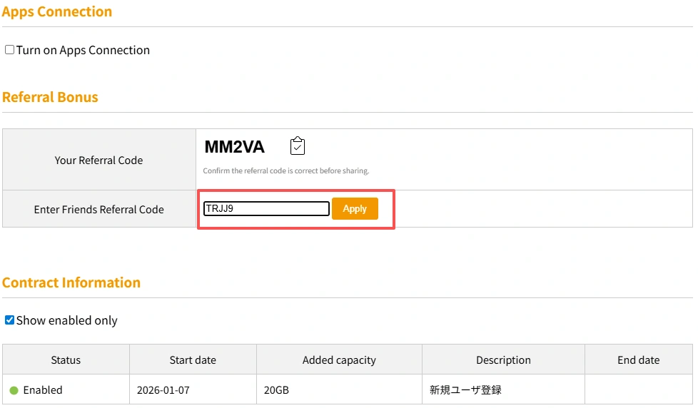 My Page -> Referral Bonus -> 输入推荐码(如