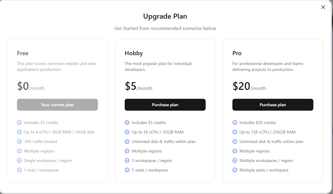 使用相关服务需满足条件:拥有注册超 180 天的 GitHub 账号,可享每月 5 美元额度(用于抵扣 Free 套餐费用,不可兑换 Hobby 套餐);