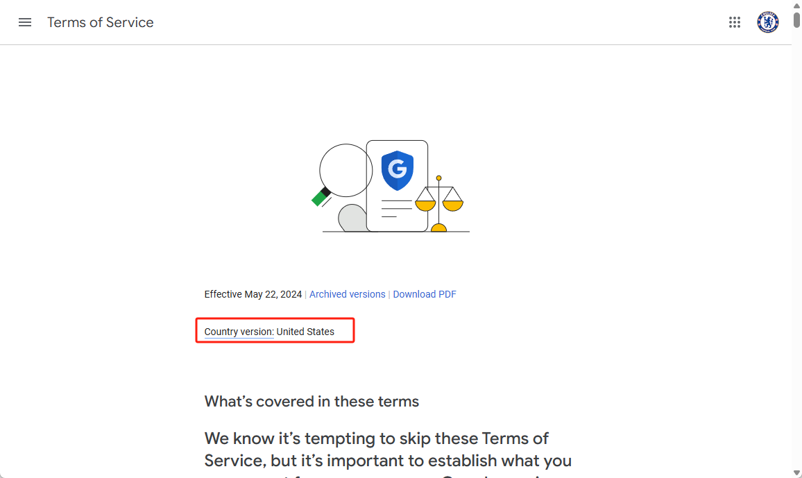 3️⃣ 前往 Google服务条款 直接查看归属地