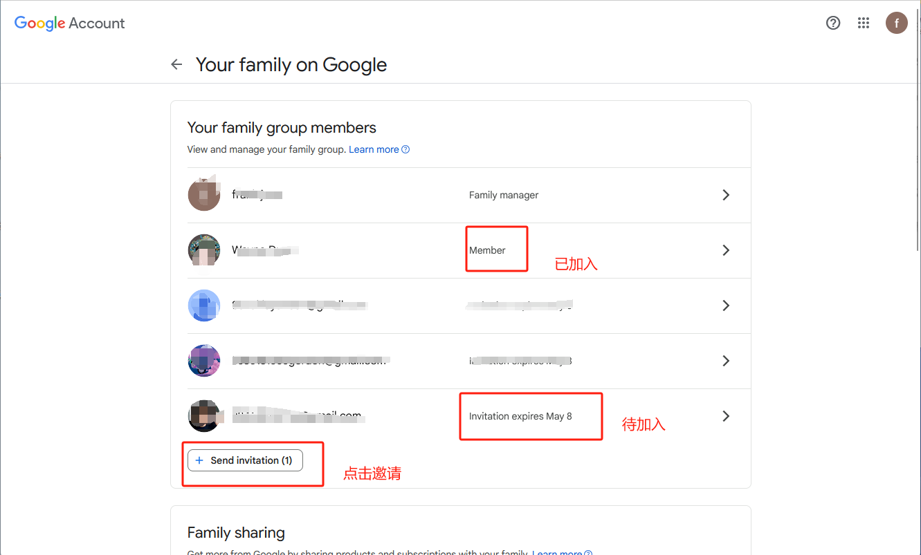 A:进入Google家庭组页面,点击开始,发送邀请,输入成员邮箱,对方接收进入即可(Google Play要在同一地区)。