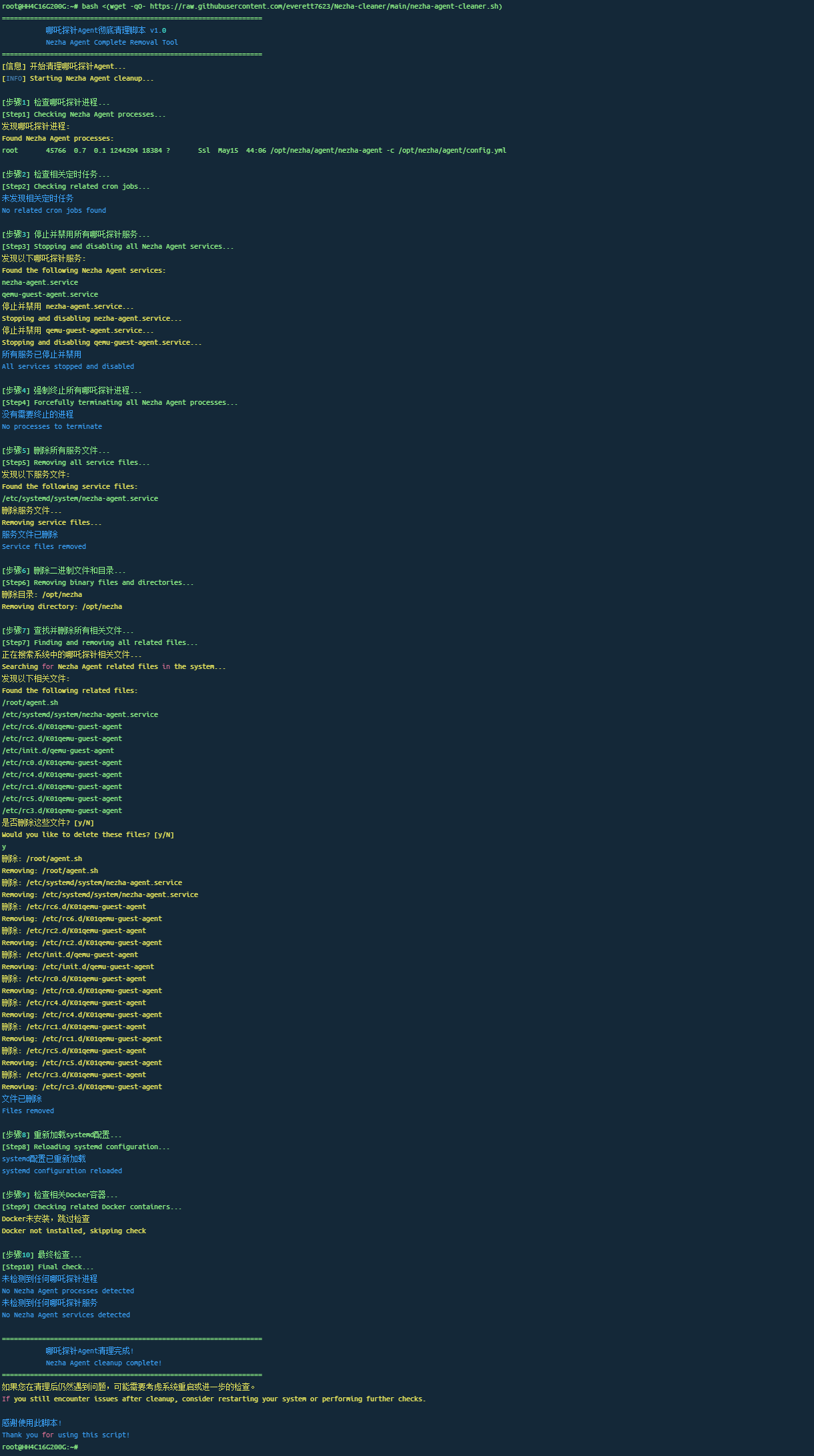 脚本将执行以下步骤来彻底清理哪吒探针Agent: